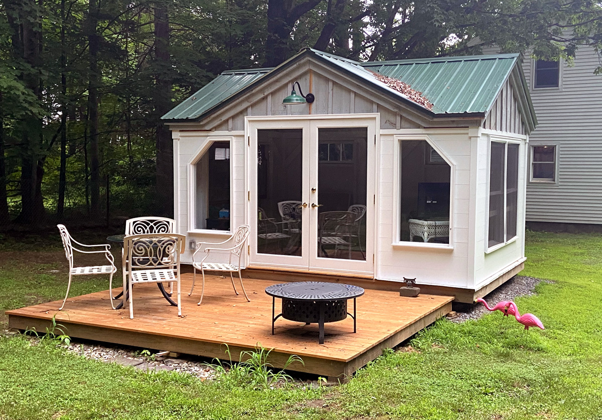 when I checked in I asked if I could see all the rooms in the Inn, and also the apartments in the old mill house. Mary Beth told me the rooms were unlocked, and feel free to look (I was the only one there when I arrived), and in the morning she gave me the keys to the Millhouse apartments. The Millhouse is at the entrance to the Inn, and straddles a brook that flows into the Battenkill River. There are three “apartments” each with two bedrooms upstairs. The end apartments (shown below) have decks over the brook. Gary and I are making plans for stays.