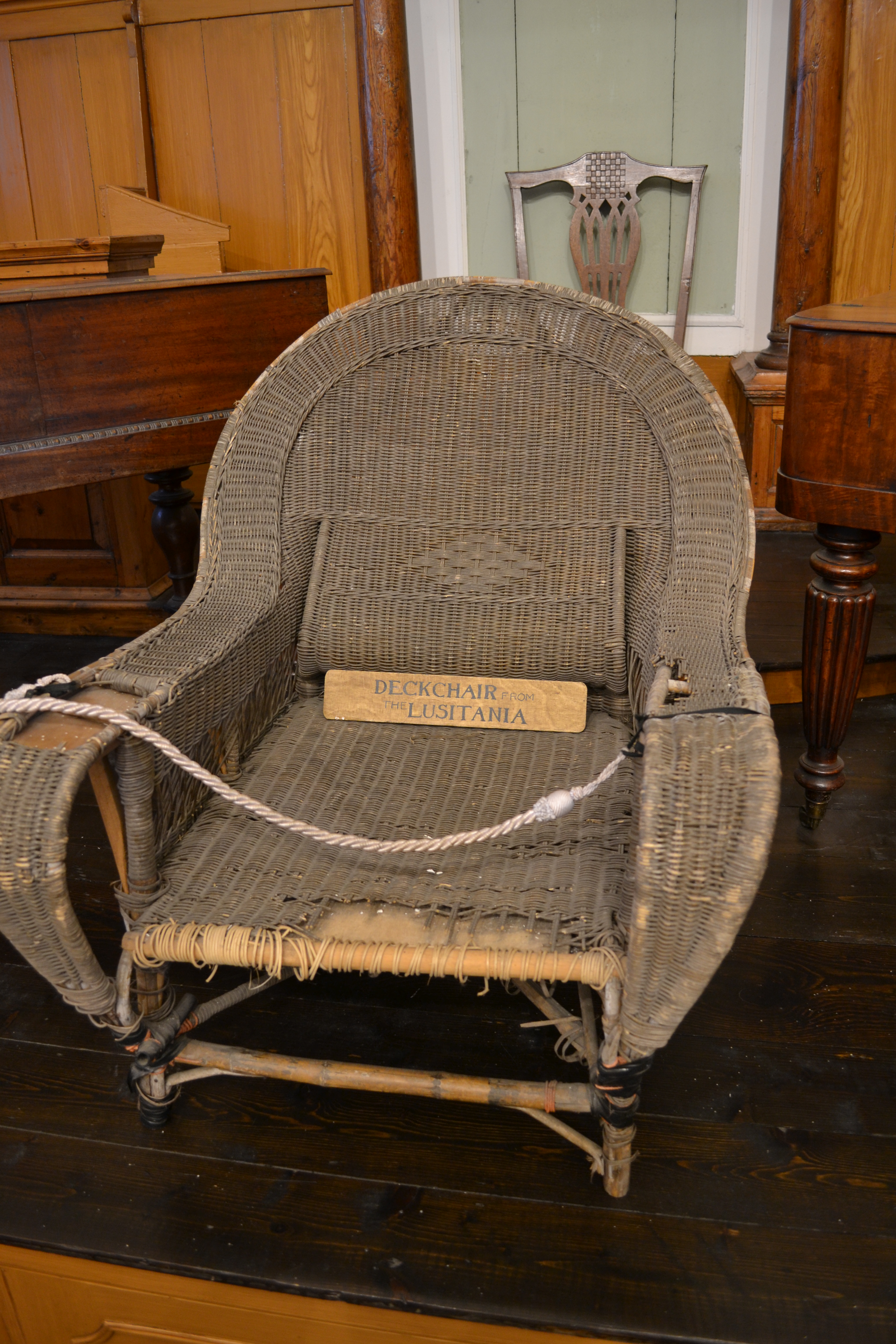 I went to the 9:15 AM history walking tour that Rick Steves’ says is the best thing here — it was great. From there I did the Desmond Castle (in various lives it was the old customs house, French prison, held American prisoners, poor-house for famine victims, undertaker establishment, and now even a wine museum). But at the town’s museum I had a volunteer spend a long time with me. It is in the old courthouse built 500 years ago, and essentially unchanged. It was here that the inquest was held following the sinking of the Lusitania in 1915. All the artifacts in the museum are Kinsale related. They have the original charters (no where near kept in proper security or climate control) dating back to 1601 hanging on the wall. Artifacts from the town’s 19th century 8 foot 2 inch giant, Lusitania items (see deck chair to the left) and on and on. No photos allowed, but he said I could take some in opposite direction from the charters on the wall — I used just available light! I then headed off to the Charles Fort for more history, and a guide helped me try to understand the wars of 1601, 1690 and the shifts of power — I am getting it down, but was able to buy a few books in the local bookshop on the local history and famine.