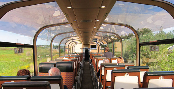 When I re-boarded I again retreated to the Dome Observation with book in hand to read prior to dinner, but ended up talking with a woman who boarded in Jasper following a Road Scholar hiking trip in the mountains there. From Cambridge, Mass, it was interesting listening to her travels and sharing mine. After dinner I returned to the Dome Observation hoping for mountain views but the area was wooded and not rocky. Having set my clock back another hour it is now 10PM Mountain Time, so I may turn in now and plan to get up about 4 AM to see what views there are. I had a stranger leave a comment on my blog the other day saying he took this train last month, and the best views are Friday Night/Saturday Morning between 2-3AM, so if we are two hours late 4 AM may work.