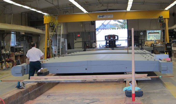 We then bussed a short distance in town to Park Canada’s maintenance yard for the canal. Our group guide is a retired Park Canada employee who spent maybe 20 years associated with the canal, and she had arranged a visit to the Gate Shop where the gates for the locks are made – a place no one gets to see. Up until maybe the 1960s gates were still made on site but now are made in this one facility.