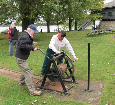 Following lunch back at Hotel Kenney we had a tour of the Jones Falls grounds with its four locks, original 1840s blacksmith shop, lockmaster’s blockhouse quarters, and the unique dam which could be the subject of an entire blog. The layout is ingenious, and the main thing you have to think about in the operation of locks is basically filling and emptying a bathtub. Our guide for the afternoon was the blacksmith. Usually I skip blacksmith shops at restored villages, but this young man was especially knowledgeable in all areas of the site, and I was part of a captive audience. Learned more than ever before about blacksmithing. Do you know why