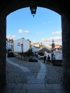 Leaving the caves we cut back over to the main highways to head to Obidos a mediaeval walled town. This visit was worth the trip, and I need to read Rick Steves’ book on Portugal to plan another trip back to see this and similar old towns. They have found remains from Roman times, but most of what is seen dates from the 12th century. There was an earthquake in 1755 that destroyed much, so the result is a beautiful blend of Mediaeval, Gothic, Renaissance and Baroque. There is a castle (a luxury hotel since 1950), and from there I walked along the town wall. I was able to view several churches. Saint Peter’s Church built during the 13th and 14th centuries, but rebuilt after the earthquake, was particularly impressive. I also enjoyed the town square with Saint James’s Church (1186, rebuilt 1755), the town portico, pillory house.