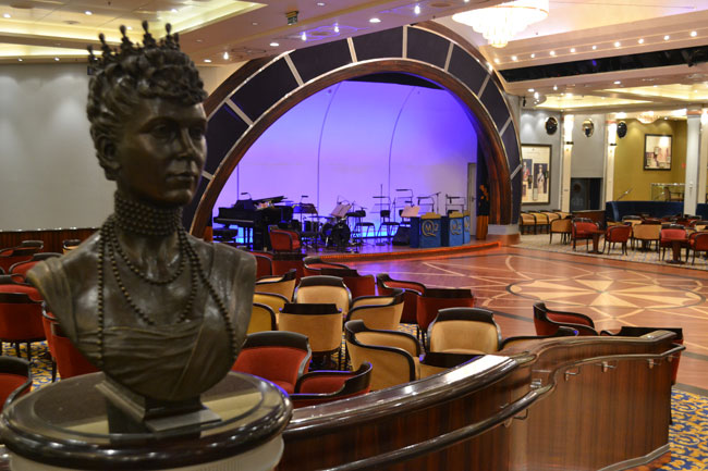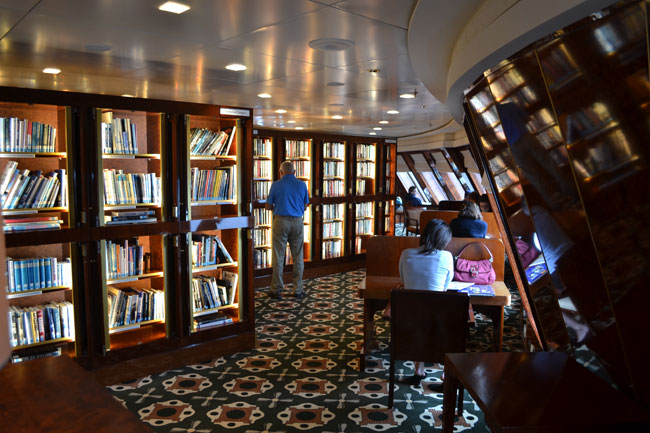Lecture done, and again enjoyable. I checked some of William Miller’s books on-line (FLOATING PALACES) and finding no used copies may have to buy some on board. I then came back to get my SLR to roam the ship taking some additional images to share, but first I just sat in the library looking out over the bow – yes, doing nothing! Since the last time I posted a slideshow from Ireland the software had changed so I see that the “portrait” images were constricted last night even though I sized them differently, so the eight I just selected I may show individually – will decide when I get this post in the works. Today was a slower paced day, and I just got my daily programme for tomorrow, and other than the DIAMOND JUBILEE STREET PARTY I may plant myself with a book someplace nice. First time I have never carried a book with me to read (I do have two small ones on Northern Ireland) because I never get to them – but with over 10,000 books in the largest library afloat, I will get something tomorrow, probably a light mystery.