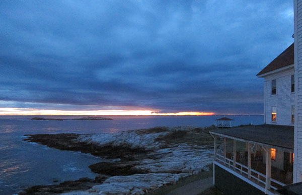 I am sitting in the grand open lobby of the Oceanic Hotel on Star Island and at this