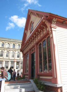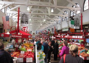 On my second “go-around” I decided to get off at the top of the town to walk back through town. I exited the bus at King’s Square and immediately entered the gorgeous 100 year old Imperial Theatre.  Leaving the theatre I crossed into the park to see the two story Victorian bandstand which is a fountain at the ground level, and for musicians to use the second floor a ladder has to be brought in.  Leaving the park I started down King Street which is the main street in town and 3 blocks long and the shortest, widest and steepest main street in Canada.  You know I love old marketplaces so I first entered the original City Market where I got a grilled veggie pita.  Walking down the hill I entered Market Square to see the New Brunswick Museum hoping to learn some history, but I was a tad disappointed because that is not what was there.  The exhibits on industrial history are well done, but I breezed through the decorative arts and skipped natural history (remember I am on compressed cruise time).   Because of the
