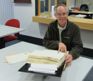 Having learned around the world that guided tours can be a plus I joined with about 5 others a tour at 2:15 that lasted about an hour and a half, getting much more out of the exhibits as a result and a few tidbits like “dashboard” coming from buggy days.  And that one early paving method for roads was a clay that some found could be used for making good cooking pots.  Out in the countryside near a farmhouse drivers usually came to holes in the road.  It seems as though the farmers would dig up some clay, form it into a pot and fire it.  The result in the road was a “pot hole.”  Well, it was a fun four hours and near closing time when I went back to the archive room to get my certificate.  When first there I was so thrilled to see the actual notation in the book I took out my camera to take a picture only to be told that I could not – they did not want to have the data on a page copied.  So, on returning I asked, “could I take a picture of you pulling the binder off the shelf?”  The archivist replied, “let me take your picture looking at the book.”  So here I am pointing to the line in the book, and to my right (your left) is my British Motor Industry Heritage Trust Certified Copy of a Factory Record – “build record” or for me Blue Belle’s “birth certificate.”  She was built 1-7 October 1959 – Date of Despatch 7 October 1959 – her birthday as a 1960 model.