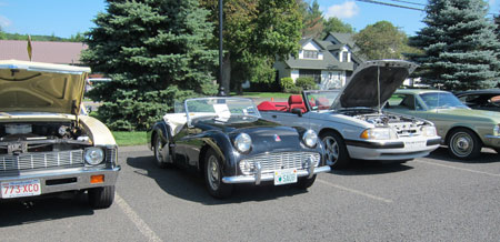 I am not a “car show” person – I am an old car driver.  I cannot relate to the 1970 Detroit iron.  My Dad was a car buff and restorer (yes, we had an 8 car garage filled), and we were always off to car events – but back then nothing newer than 1930 was allowed.  I can make an exception, I do enjoy cars up to the mid-1930s, but hot-rods and muscle cars – sorry, NOT RAY.  But the Sunday event at Kringle Candle in Bernardston was “on my list,” partially because I wanted to put a “Wanted to Buy – 1930-31 Model A Ford Tudor Sedan” sign on the windshield, and I had not yet stopped at Kringle Candle and explored its shops and restaurant, The Farm Table.