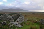 Northwest less than an hour from Westport is Achill Island, Ireland’s largest island (connected by a bridge). This was another totally different view of Ireland than what I had experienced before. It is a vacationers’ area with beaches and hiking and biking trails, and remote. Archaeological remains are here too, and I hiked to see the Deserted Village on the slopes of Slievemore Mountain.