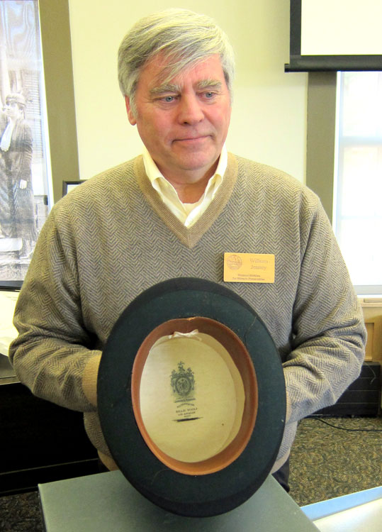 When President Coolidge died, his wife, Grace, gave all his clothing away but took all the labels out so people could not capitalize on what they owned. She gave his top hats to a magician friend to pull rabbits out of, but blanked out the President’s name. The son of that magician recently gave the hats to the Coolidge site, and here Bill Jenney is sharing one with the President’s name blanked out by Grace.