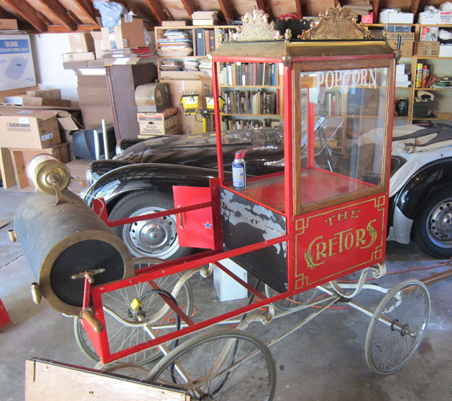 In 1962, when first traveling US Route 7 in my 1929 Model “A” Ford Roadster, I discovered in Great Barrington, MA, a Cretors Model “D” Horse Drawn Popcorn Wagon. A