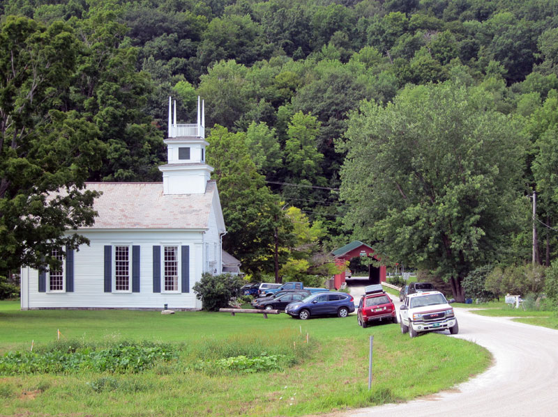 But it was miles north on NY22, and more miles. At worst I would bump into Lake Champlain and turn right to Rutland, but all of a sudden a little sign was on the right – “West Pawlet.” Perfect, a turn back to Vermont, but the road was closed. No problem, turn right at the next unmarked road, and voila, 1/2 mile and I am in West Pawlet, VT facing an abandoned building with 1920 GARAGE spelled out on the slate roof tiles. A left turn and around the bend are the untouched vacant storefronts – circa 1900. I was now on VT153 heading south toward Rupert. Saw a small sign for that, and knew it was the right way to head even though I had never been to Rupert either.