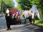 Coming down a hill I see what appears to be a fairground off to the right with another festival underway. I get to a stop sign, people are everywhere sitting and waiting. I call out, “what is going on.” We are waiting for the parade I was told, it starts at 5:30. “What time is it now?” I ask. About 10 to 5 was the reply. I turn left on Route 315 towards Dorset (first time there was 1964 in my 1929 Model A Ford), but decide to pull over and park. I ask a lady where the parade starts. Just a short ways ahead she replied. I decide to wait, I finish my Snapple and soon learn that it is the Old Home Days parade with the theme – “Old Haunted Homes Day.”