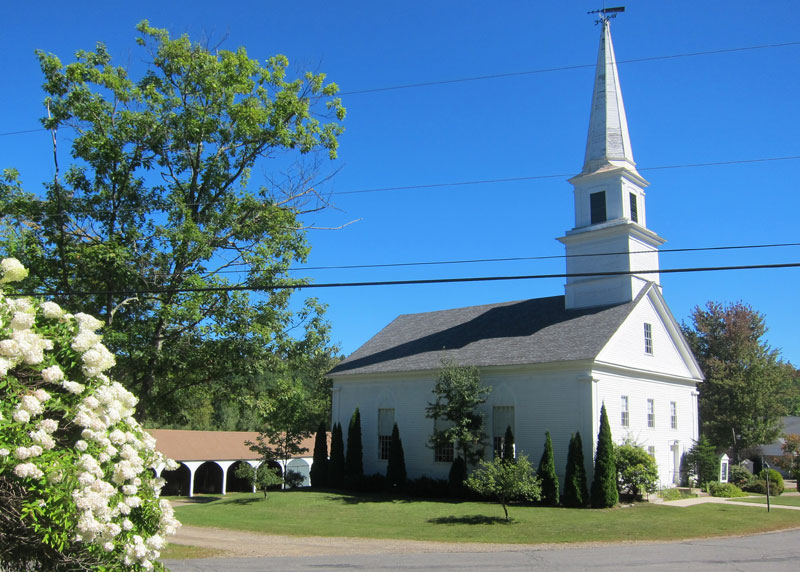 The Congregational Church and the horse and buggy sheds that still exist.