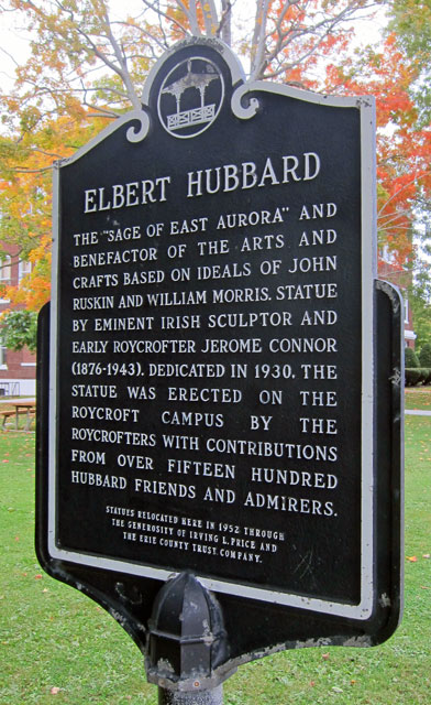 Hubbard began as a salesman for the Larkin Soap Company in Buffalo, NY, and excelled as a marketer. An exceptional marketer, he invented the idea of premiums from box tops, and coupons. But at 36 he became bored, and wanting to be a writer sold his interest in the firm for about $75,000. He tried Harvard, but after a few months took a Grand Tour. In England he met William Morris, and became fascinated with Morris’ Kelmscott Press, and the Arts and Crafts Movement. He returned to East Aurora buying land and printing presses. Changing his life was the publication of A MESSAGE TO GARCIA in 1899. A best seller, only behind the Bible and Dictionary, the message of his essay was a solid work ethic to always do your best, and do what was right. His popularity with his publication, THE PHILISTINE, A PERIODICAL OF PROTEST, grew exponentially, and he had to build a 27,000 square foot printing facility. Eventually over 500 people worked on the campus and the farms to support the campus.