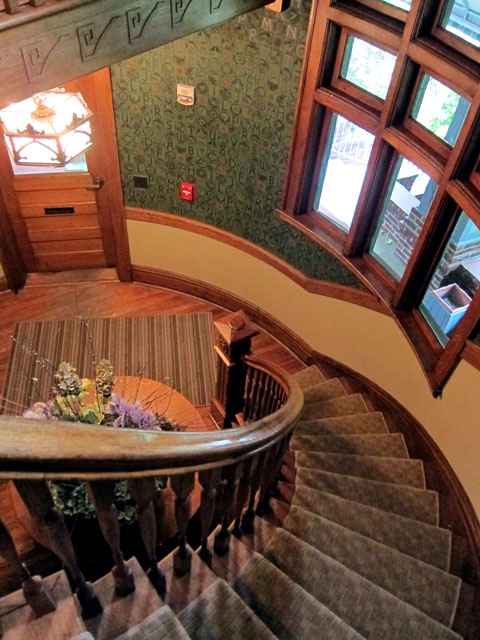 “Arts and Crafts is not a style,” she said in her library talk. “It’s a philosophy.” Ms. Turgeon was known to friends for her heart-to-heart hugs, an embodiment of a Roycroft theme. The words “head,” “heart” and “hand” were carved on the door to Hubbard’s wife Alice’s office, which is now at the entry to guest rooms at the inn. They were a nod to a John Ruskin quote and fundamental Roycroft creed: “A belief in working with the head, hand and heart and mixing enough play with the work so that every task is pleasurable and makes for health and happiness.”