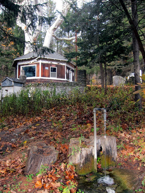 Premium Outlets Mall at Exit 2 of the Mass Pike. On the way to the shopping however I sidetracked to Tyringham. About 18 years ago Cathy and I stumbled into this architectural oddity – Santarrella.