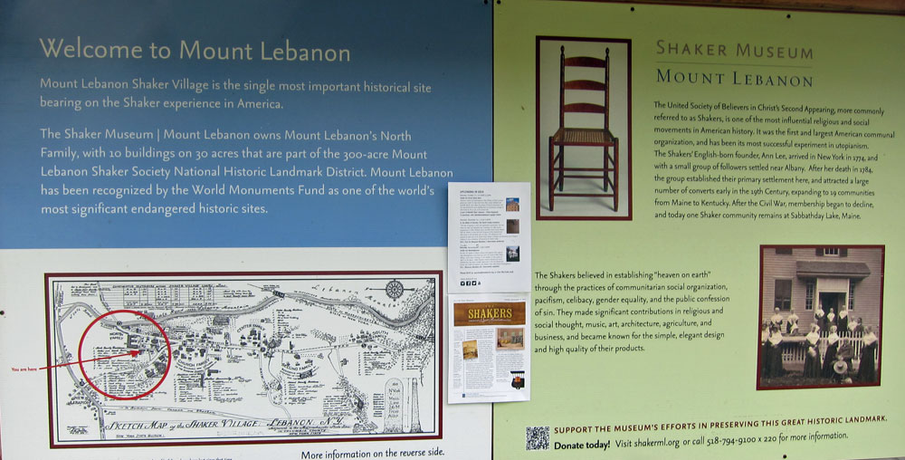 Published by the Lebanon Valley Heritage Center, the map (taking up most of one side, and very well done) and historical guide introduced the once-famous Lebanon Spring Spa Resort and the Mt. Lebanon Shaker Village – the first in the country. HOW HAD I MISSED THESE BEFORE? I shunpike, but the spa and village are just off the main route. It was this fantastic brochure that introduced me. Of course I explored, and have to return.