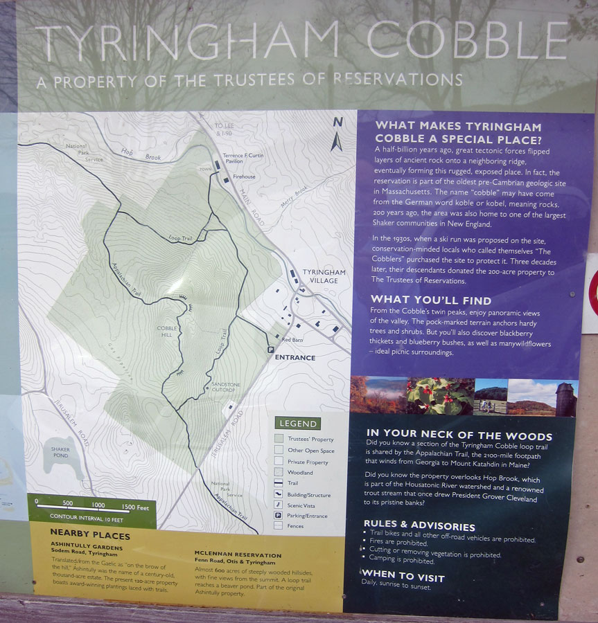 Around the bend is Tyringham Cobble, a fascinating geological spot with hiking etc. The properties owned by the Massachusetts Trustees of Reservations are worth learning about and exploring.