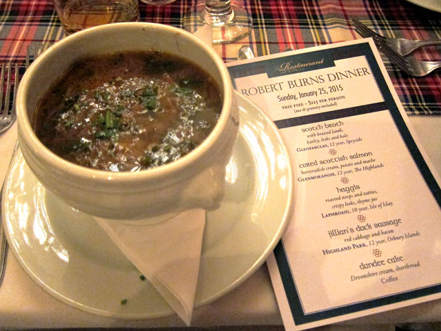 I was not aware of the Robert Burns tradition. You do find the most unusual events/venues to savor and share! Since I do not share an appreciation for alcohol (I get high on orange soda), the liquid portion of the meal would be lost on me. Thanks for taking me along on your journey. Jim and I enjoyed an all breed dog show sponsored by the Erie Kennel Club yesterday. Carol