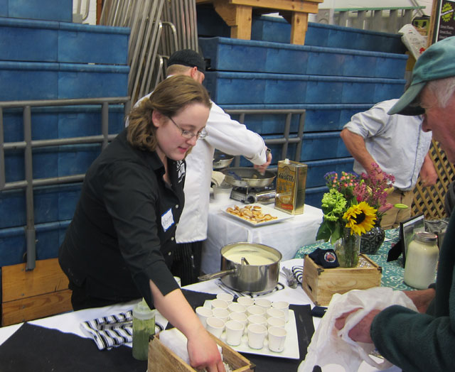Tara is a NH State Representative, and very influential on the Environment and Agricultural Committee (one time we were out together and chatted with the governor of NH). The food fair was right up her alley so to speak, and she was learning from Vermont exhibitors, and sharing with them, and New Hampshire residents. Here she is detailing to NH farmers and restaurant owners of Ariana’s Restaurant in Orford, NH, the bill she sponsored, and was passed, allowing local farmers to process and sell their poultry and rabbits directly to restaurants. They were thrilled to hear of the passage.