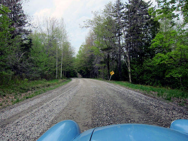 When we got to Londonderry I turned east on Route 11 with the intention of picking up a really back road to Grafton. I think I was on Route 121 before, but it did not look familiar at first – all woods. Nine miles of it are dirt, and I love it when there are no more telephone poles and power lines. Then you know you are really shunpiking.