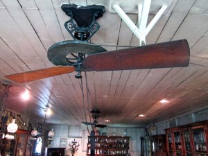 - Note the belt comping from the water pump (originally driven by a water turbine in a stream) that drives the ceiling fans. FANTASTIC