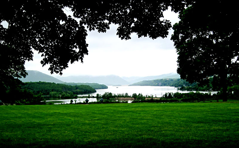 Deteriorated and torn down and stored, this home was resited just above West Point. Here is the view from the front looking down the Hudson River (West Point is off to the right).