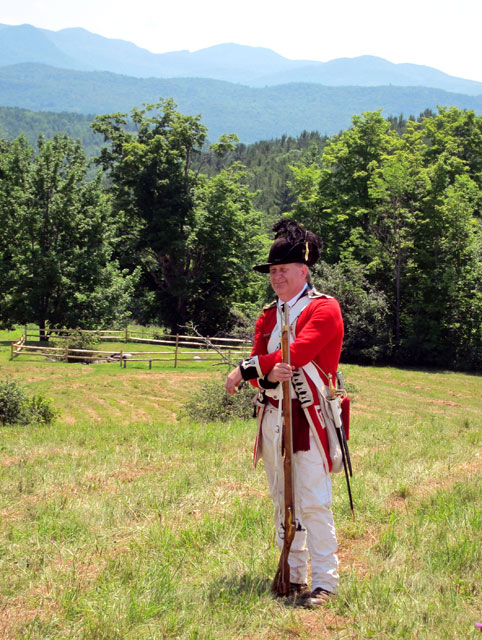 The same view you would have seen 238 years ago. The split rail fence you see surrounds the site of the original farmhouse from 1777 when this was farmed just before the battle as the Americans were retreating from Fort Ticonderoga and Mount Independence followed by the British and Germans. Remember, most of the uniforms and clothing were wool – great for those 70 and 80 degree days.