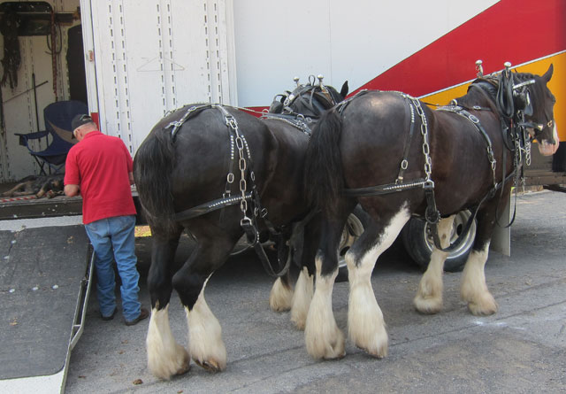 I chatted for awhile with a local resident, and then with the owner of these Clydsedales – I spent a half hour learning about these uncommon black Clydesdales (only about 255 in the states) and horse behavior, horse shoe replacement (nailed into what would be finger/toe nails) and the frequency, types of horses the Amish prefer, and on and on. I love having no schedule and just visiting with strangers. He was here to later give rides before the fireworks.