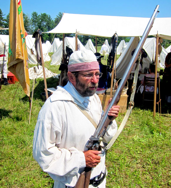 I chatted with this Rebel for awhile. He portrayed an individual from Attleboro who was in the battle. I learned from him that a musket does not have rifling. That is the terminology difference, and you know that you never know which way a musket ball will go (since there is no rifling to stabilize it), thus the close firing range (50-80 yards) and shooting in volleys throwing lots of lead out.