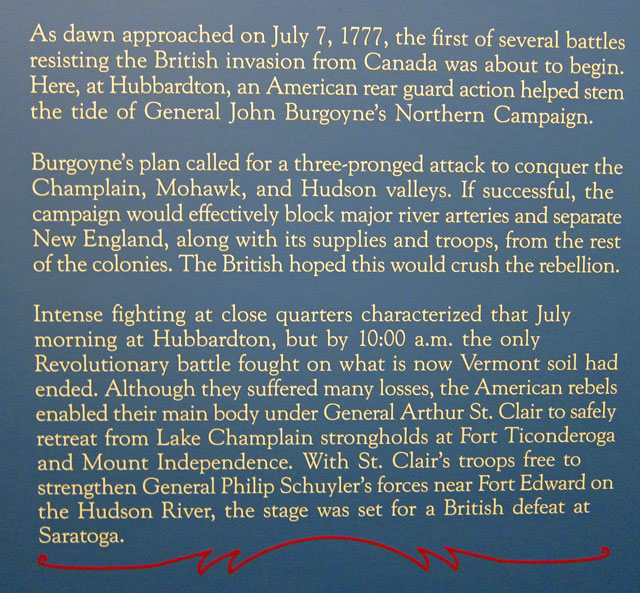 What with Alex’s visit and our trips to Bromley, the 4th of July in Plymouth Notch, some planned adventures this coming week in Vermont, why would I be back in Vermont today you ask? Easy – the 238th anniversary of the Battle of Hubbardton fought on 7 July 1777. The only Revolutionary War battle fought in Vermont (of course you know the Battle of Bennington [VT] was really fought in New York!) this was the first event that eventually lead to the British defeat at Saratoga.