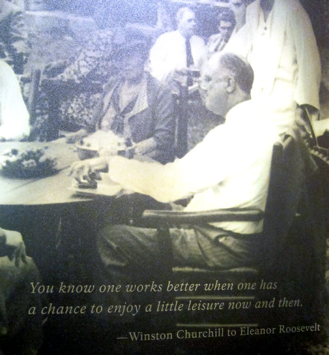 The Stone Cottage was the first structure built on this Roosevelt picnic spot. It was built for Eleanor’s good friends, Nancy Cook and Marion Dickerman. There was a room for Eleanor to stay in when FDR was away. Here is the Stone Cottage (built 1924-26) as you enter the site.