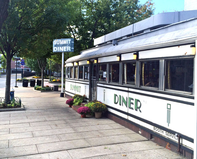 It was a great weekend, albeit cold and rainy. Swim lessons for all three, Devi dressing as a princess for a birthday party, soccer for Nikhil. And, playtime with all three. I arrived to pick the kids up at school with Julie Friday, and left after taking them to school on Monday – a full cycle. Dave, my son-in-law, knowing my love of classic diners suggested I stop at the Summit Diner on the way out of town for breakfast with Julie. But she had a dentist appointment, and I did not ask. But, I decided that when I left I would stop if there was a parking space. There was.