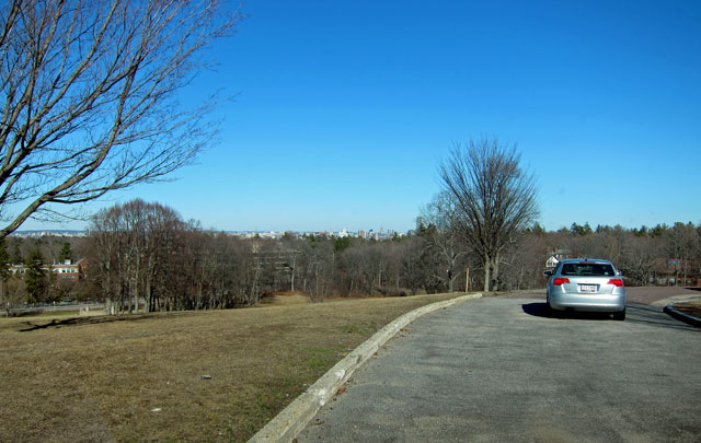 Driving along the road on the estate up the hill to where the mansion was, this is the view looking north east to Boston (you can just make out the Prudential Center Building behind some trees).