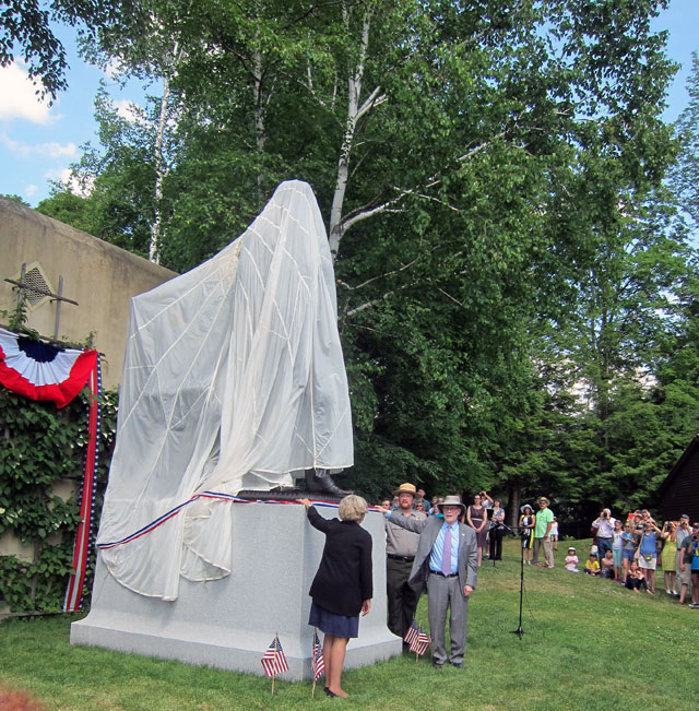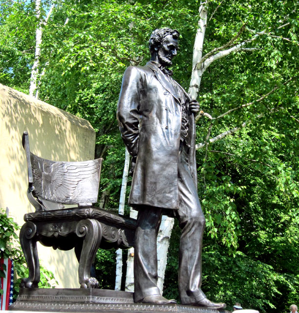 And, 102 days ago I told you about my two nights at (where else?) The Red Lion Inn for my birthday present to myself – 13-15 March. But I am “itchy” to get out. Sadly BLACK BEAUTY and BLUE BELLE each have an illness, and LADY RAB, spits water sometimes, but hey, as a friend said to me this morning, “you love to drive, Ray,” so I gave in and headed out with the “new” grey ghost. If I do not go to Plymouth Notch, where else would you find me? Yes, at the Saint-Gaudens National Historic Site, in Cornish, NH, and today was the ceremony and unveiling of a new bronze cast of ABRAHAM LINCOLN: THE MAN (Standing Lincoln).