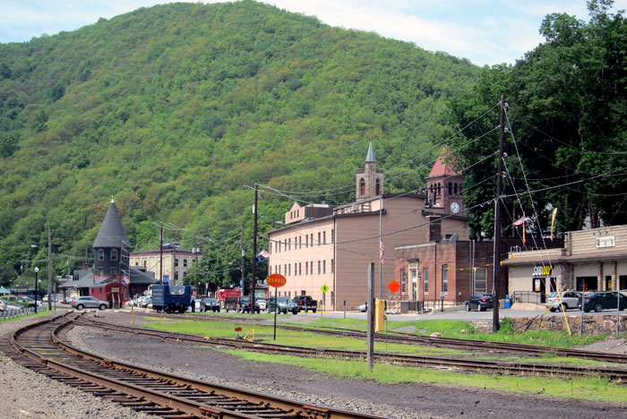 - Looking across the square in Jim Thorpe from the train station.