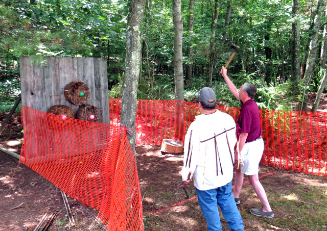 We looked, but none of us needed any tchotchkes. But I could not resist a $1 donation to throw a tomahawk. I have no idea why Scott didn’t take this action shot while facing me!