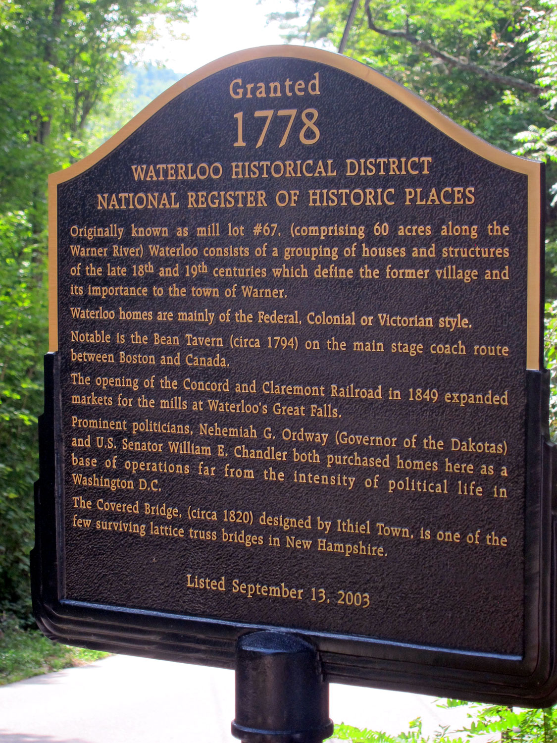 and, then the Waterloo Bridge, again across the Warner River, built originally in 1840, rebuilt in 1857. Listed only for 6 tons, the clearance is 8 1/2 feet.