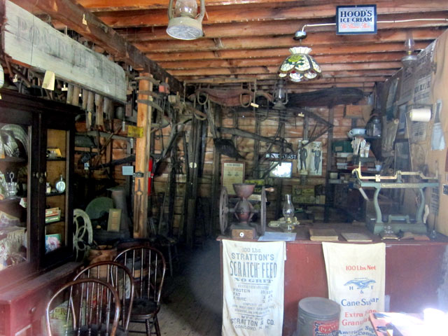 Then I continued on Route 103 to Bradford to pick up Route 114 to Sutton. Ends up there is both a North Sutton, and a South Sutton. Arriving in South Sutton a few people were on the common, and a small cardboard sign said “Old Home Days 10-2” – I had just missed it. What a gorgeous village. Meeting house on the hill, obviously an old tavern to the left, and a fantastic old country store packed with original items. I clambered up onto the porch to peer inside the windows.