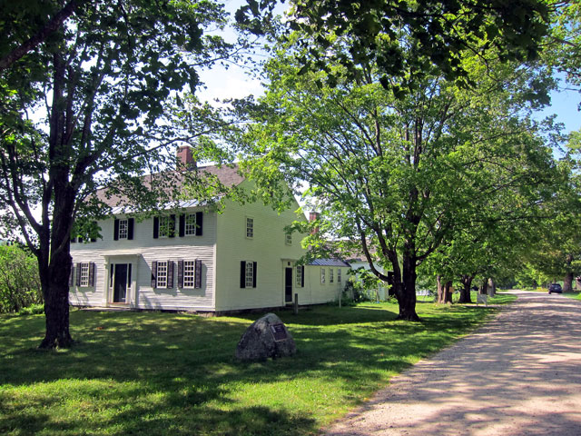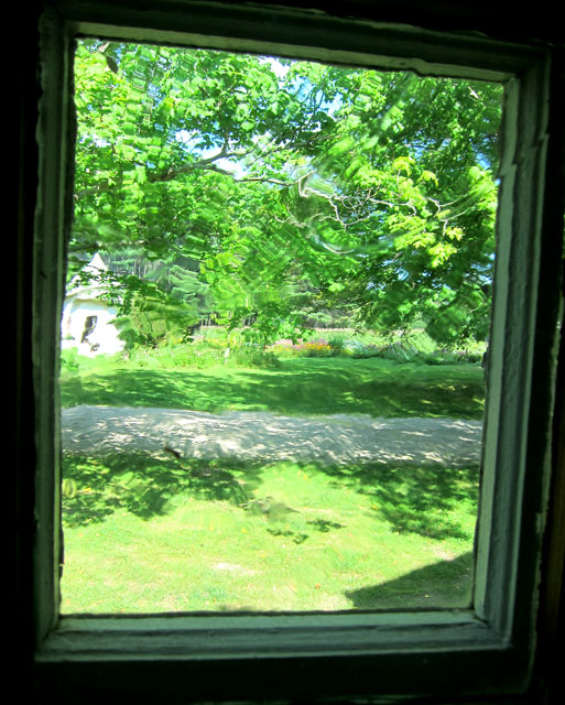 Sundays in the summer the homestead is open for tours — I made it just in time. Original – I love it – owned by one family until the 1940s, then one last owner. Upstairs is a ballroom where the militia would have dances – yes, musters were held in a flat field across the street – thus the name. No pictures allowed inside (understandably so the treasures are not publicized) but I could shoot through this pane of wavy glass.