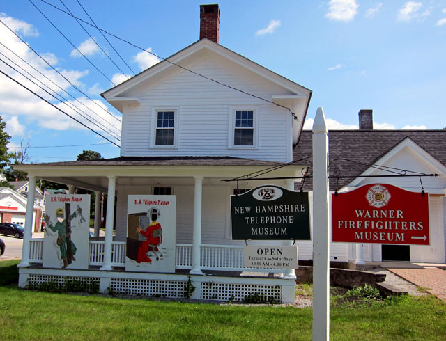 From Hopkinton to Warner I was on the Currier and Ives Byway (Route 103 – the old main road that I-89 now parallels. In recent years a number of states have designated scenic drives, and I hope to share those state websites with you in time . Sadly in Warner the New Hampshire Telephone Museum is closed on Sundays, but I walked around town, and drove up to the Mt. Kearsarge Indian Museum, but decided to wait when I could visit both museums at once. Glad I did not go in, because I would not have made it to my final tour destination in time. You can click the image above left to read the sign about Warner.