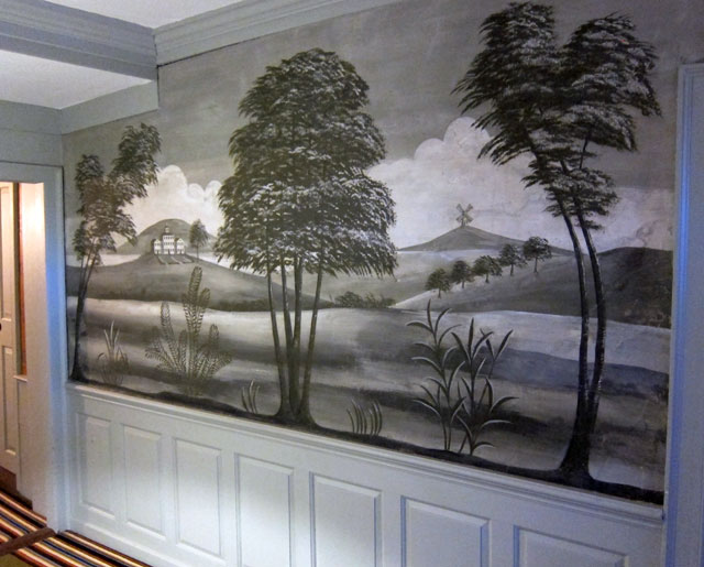 The main hallway adorned by Rufus Porter years ago, this time is black and white.