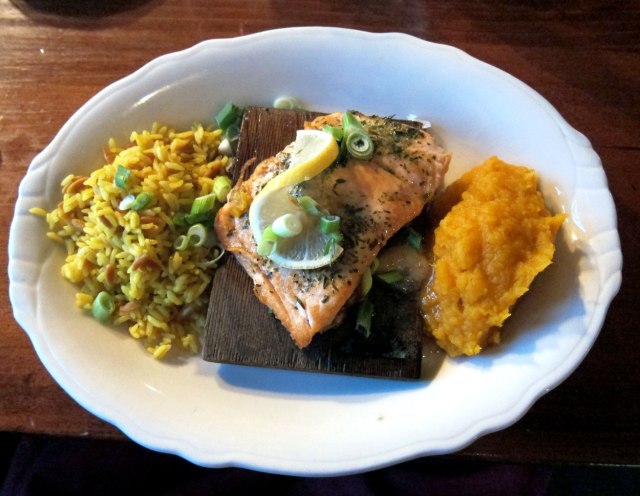 Until a tour bus arrived, I was the only guest for dinner. Dinner was great. I had Onion Soup Gratinée and Cedar Plank Salmon. Worth the trip and dinner experience, but learning the seating capacity in all rooms comes to 400, I believe I will pass on going to one of the large dining events – I “don’t do crowds.”