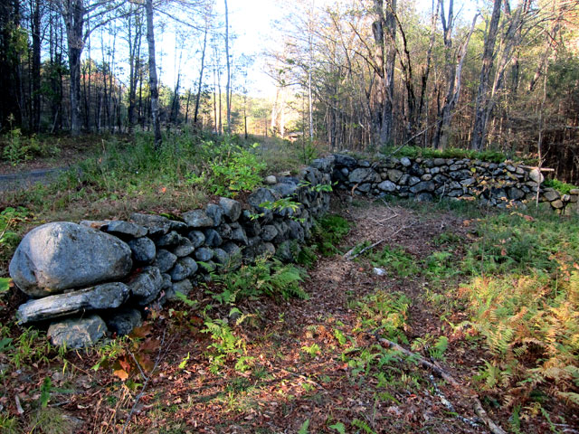 On the road to the Freeman Farm. Fences are held up by criss-cross pieces when posts cannot be driven into rocky soil