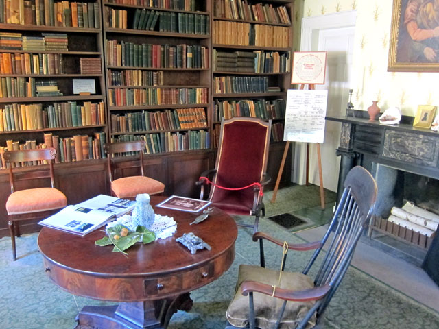 Emerson was considered the “rock star” of the day. People took the stage in from Boston just to see him, and others moved into the area just to associate with him – e.g. The Alcott Family returned from Walpole in 1855 to live across the street. The home is still in the Emerson family, the last Emerson living there died in 1909. It is as it was with the original furnishings except the study where Emerson did all his writing. It has been removed to the Concord Historical Society across the street, but recreated in the home (downstairs room on the right in photo above) pretty much as it looked.
