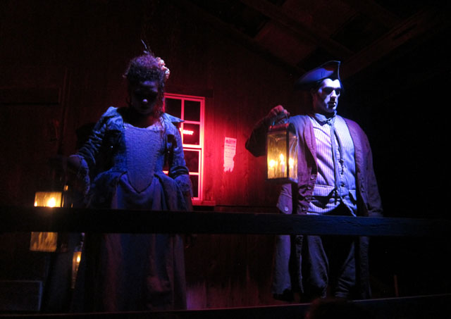 finally was a walk around the torch lit mill pond to the covered bridge and the ride of the Headless Horseman (sorry, missed a shot of him).