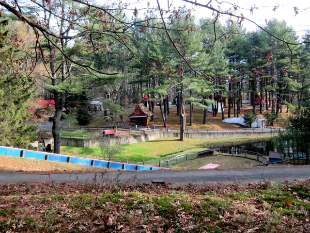 crossing the bridge, there was still ice on the pond. The slide (see my earlier post for a video of my grandson enjoying it) will be open in the spring.