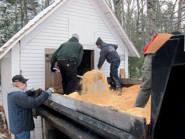when I got there they were unloading sawdust which acts as insulation between the layers of ice blocks.