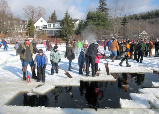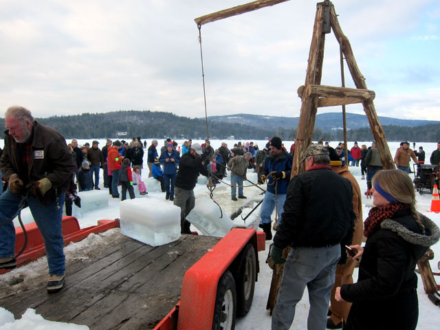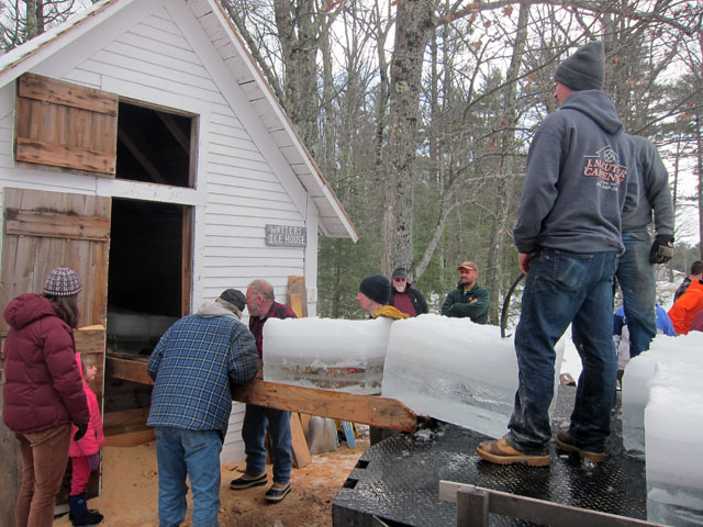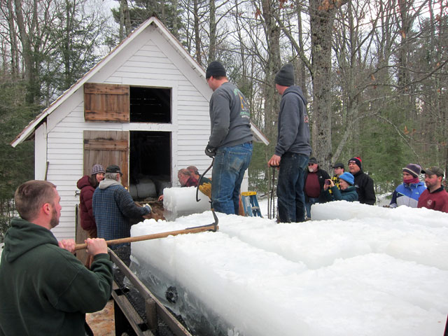 the bottom layer of blocks in the ice house was still from last year’s harvest. They were laying two levels of blocks, and then a layer of sawdust.