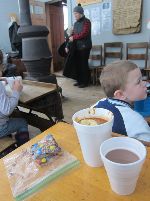 and, that was about it, except for lunch in the School House, I choose the combo – soup, beverage, and desert. About 7 soups, but I had the venison and bear meat Chile, cocoa, and some great cookies. It was all I could do to sit at the school desk.